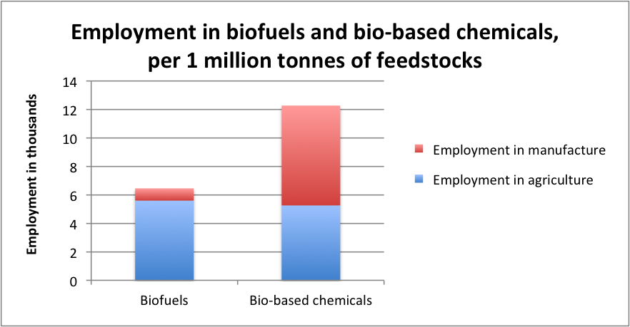 The assessment so far only considered employment generated in the industrial manufacture of biofuels and chemicals.