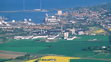 Aerial view of Kalundborg sustainable industry complex